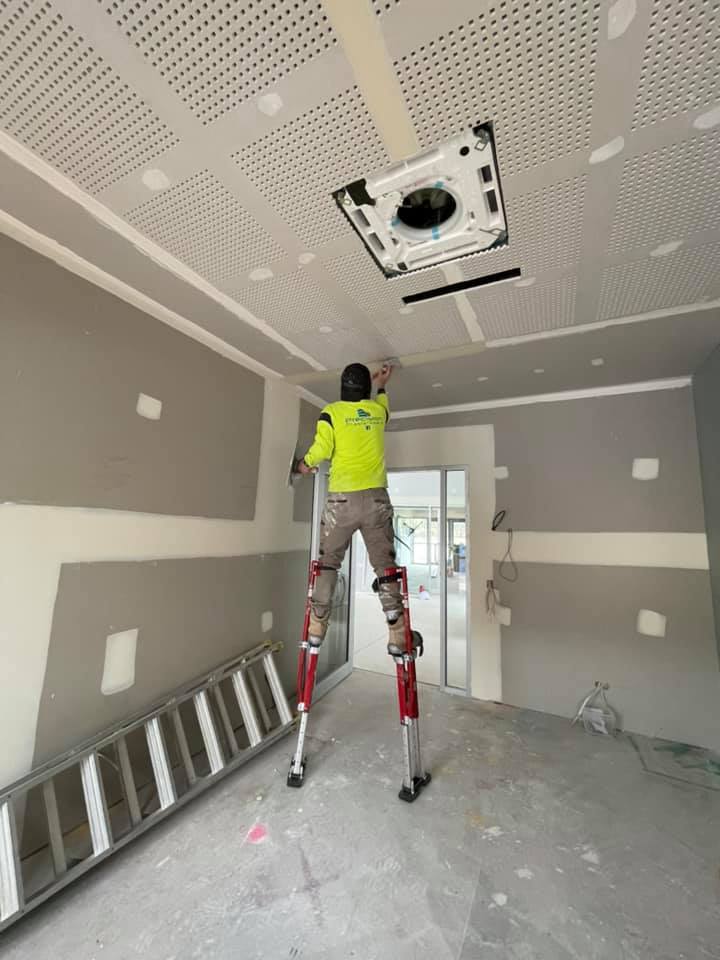 We flush all plasterboard using a professional 3-coat system to achieve a Level 4 finish, fully compliant with Australian Standards (AS/NZS 2589-2017).